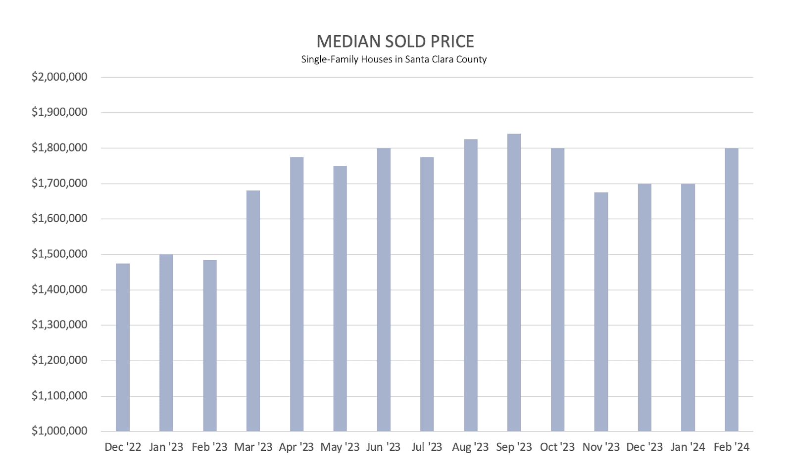- We are seeing early price appreciation. The median sales price for a single-family house in Santa Clara county was up 5.9% in February, month-over-month.