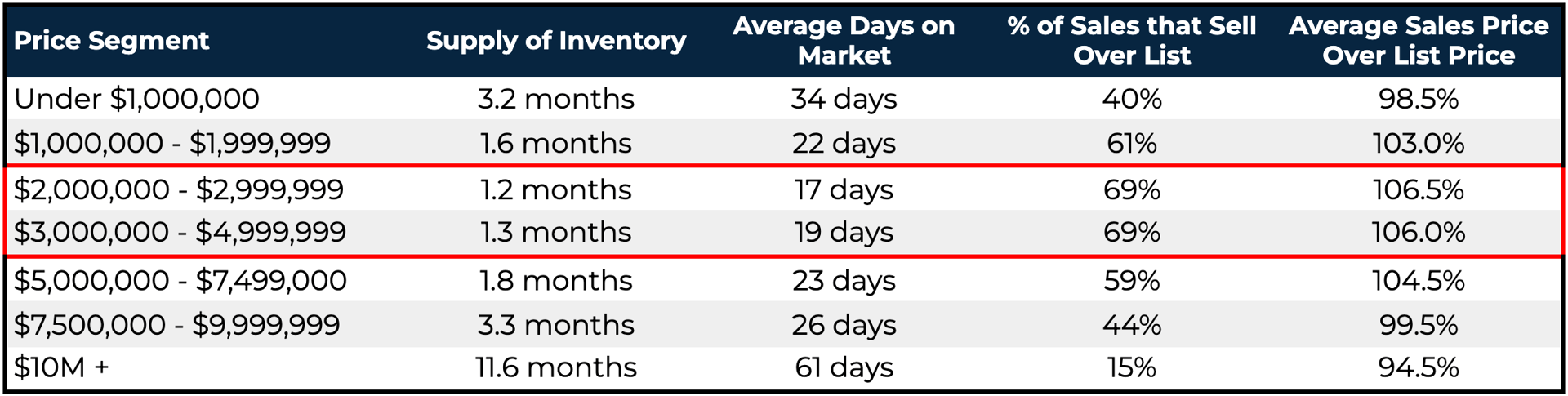 The most competitive segment remains single-family homes priced around $3M: